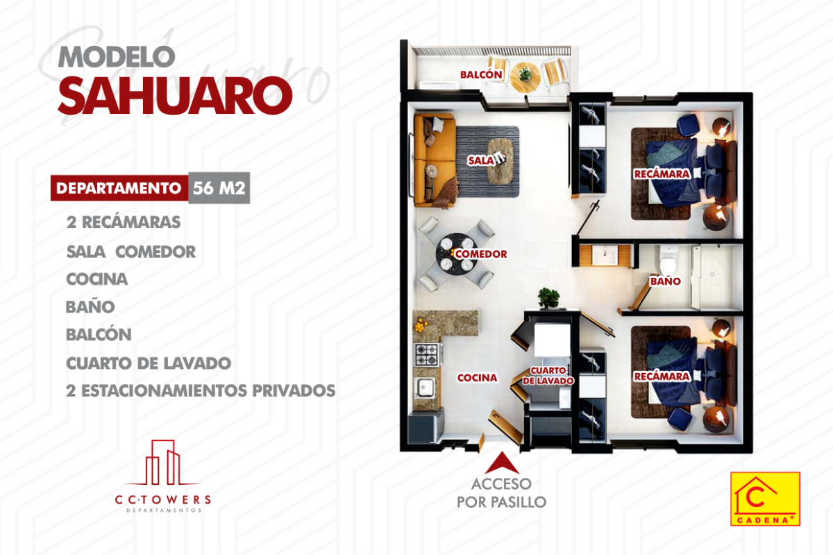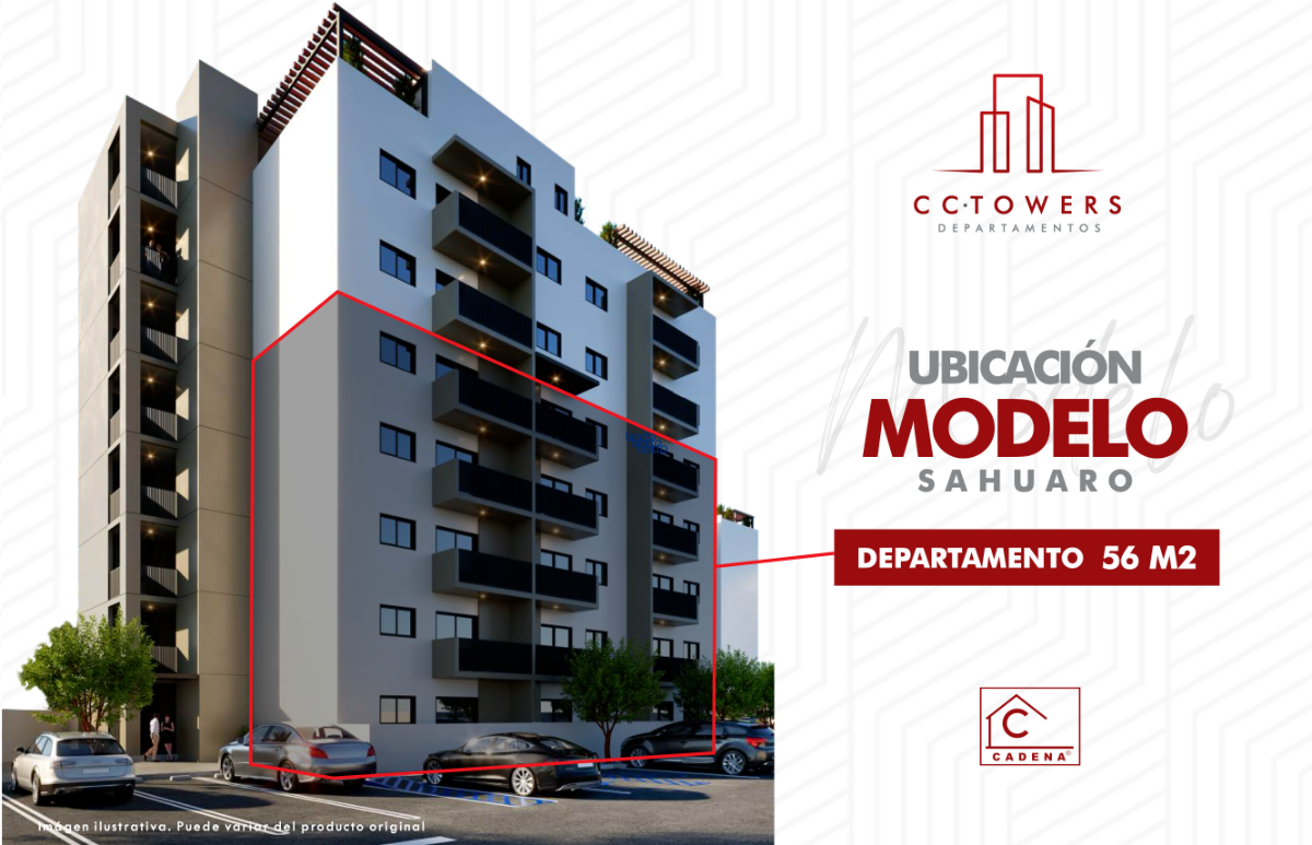 CC Towers se erige como un emblema de innovación, compuesto por tres torres que albergan 120 departamentos. Desde el acogedor Modelo Sahuaro de 56 m, ideal para aquellos que buscan eficiencia y confort, hasta el magnífico Penthouse Mezquite de 84 m, que ofrece vistas panorámicas incomparables de la ciudad desde su terraza privada en lo más alto de la torre.
