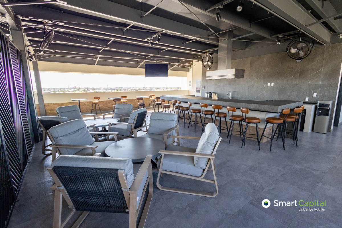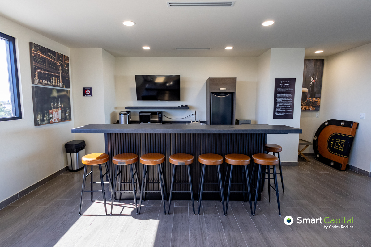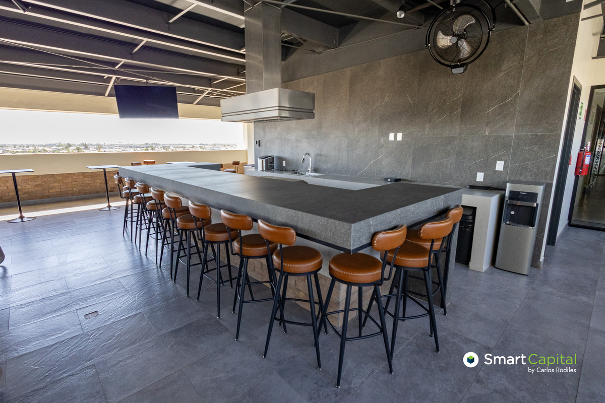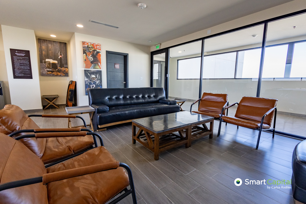 Amenidades: alberca, gimnasio, salón de clases, salas de juego y eventos, rooftop con asadores, seguridad 24/7