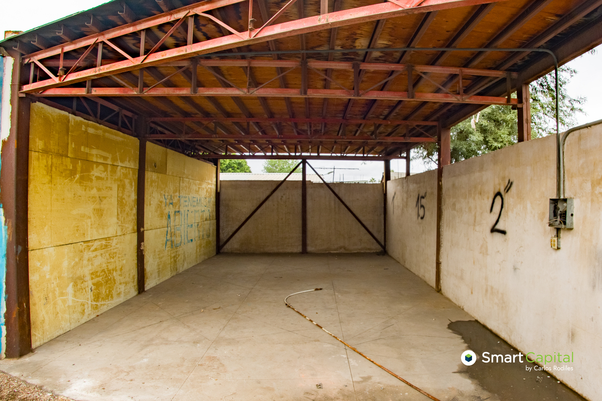 Zona de taller / bodega al fondo para trabajo, almacenaje y maniobras.